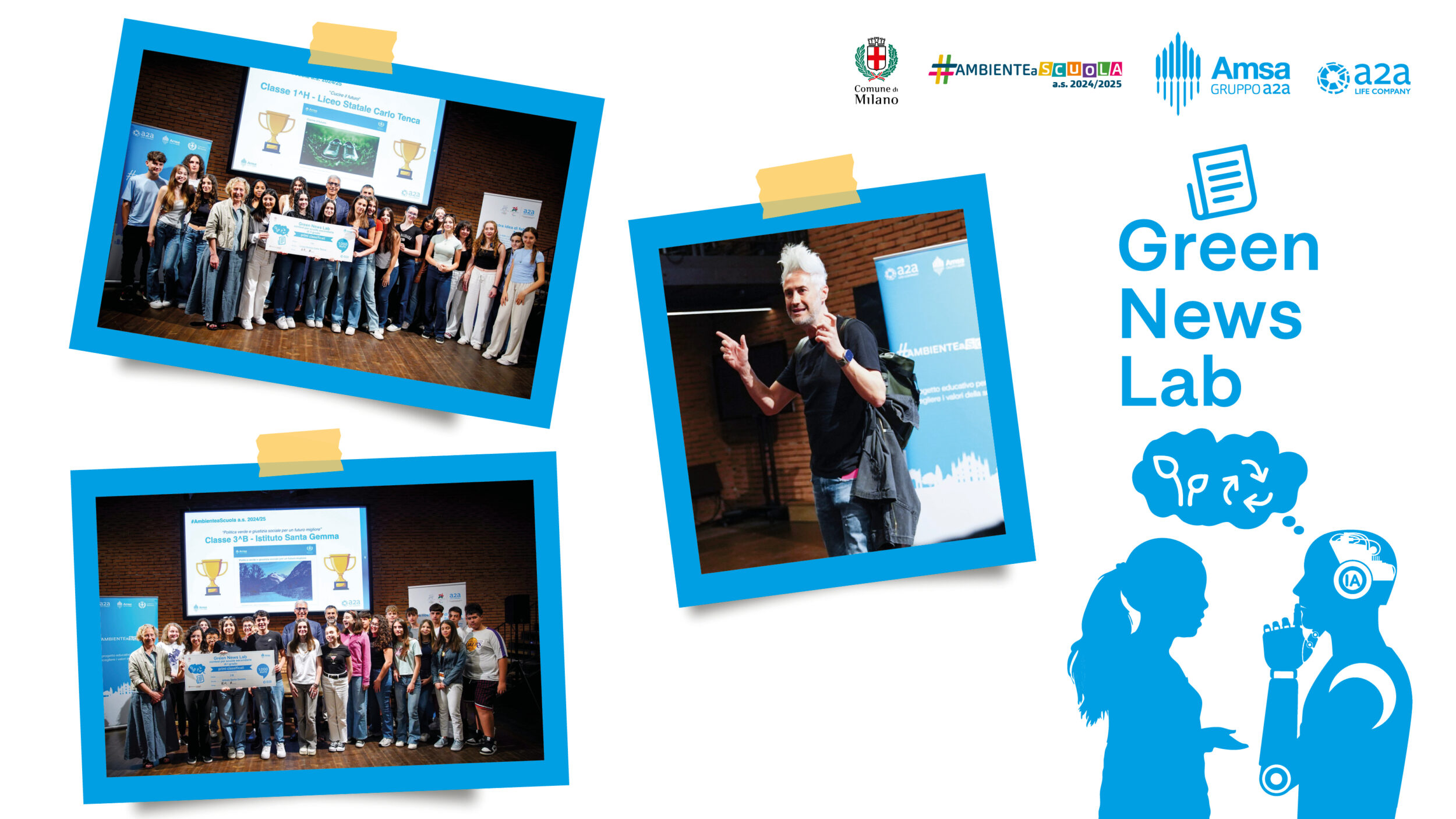 Con uno show al Teatro Parenti di Milano, con protagonista Vincenzo Schettini (La fisica che ci piace), Amsa e A2A chiudono anche quest’anno #AmbienteaScuola (il progetto che da 7 anni coinvolge tutte le scuole di ogni grado del capoluogo lombardo) e premiano le due classi vincenti del contest “Green News Lab”.