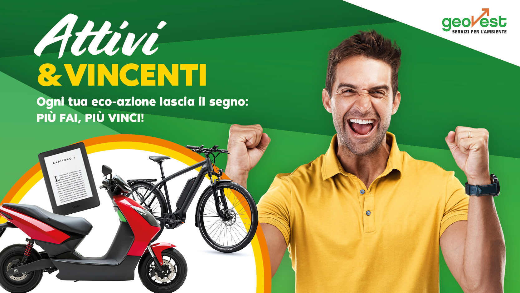 È ufficialmente partito il 15 marzo Attivi e Vincenti! Ogni tua eco-azione lascia il segno: più fai, più vinci!, il concorso a premi realizzato da Achab Group per Geovest, la società pubblica che si occupa della gestione integrata dei rifiuti urbani in 11 comuni dell’Emilia-Romagna tra le province di Modena e Bologna.