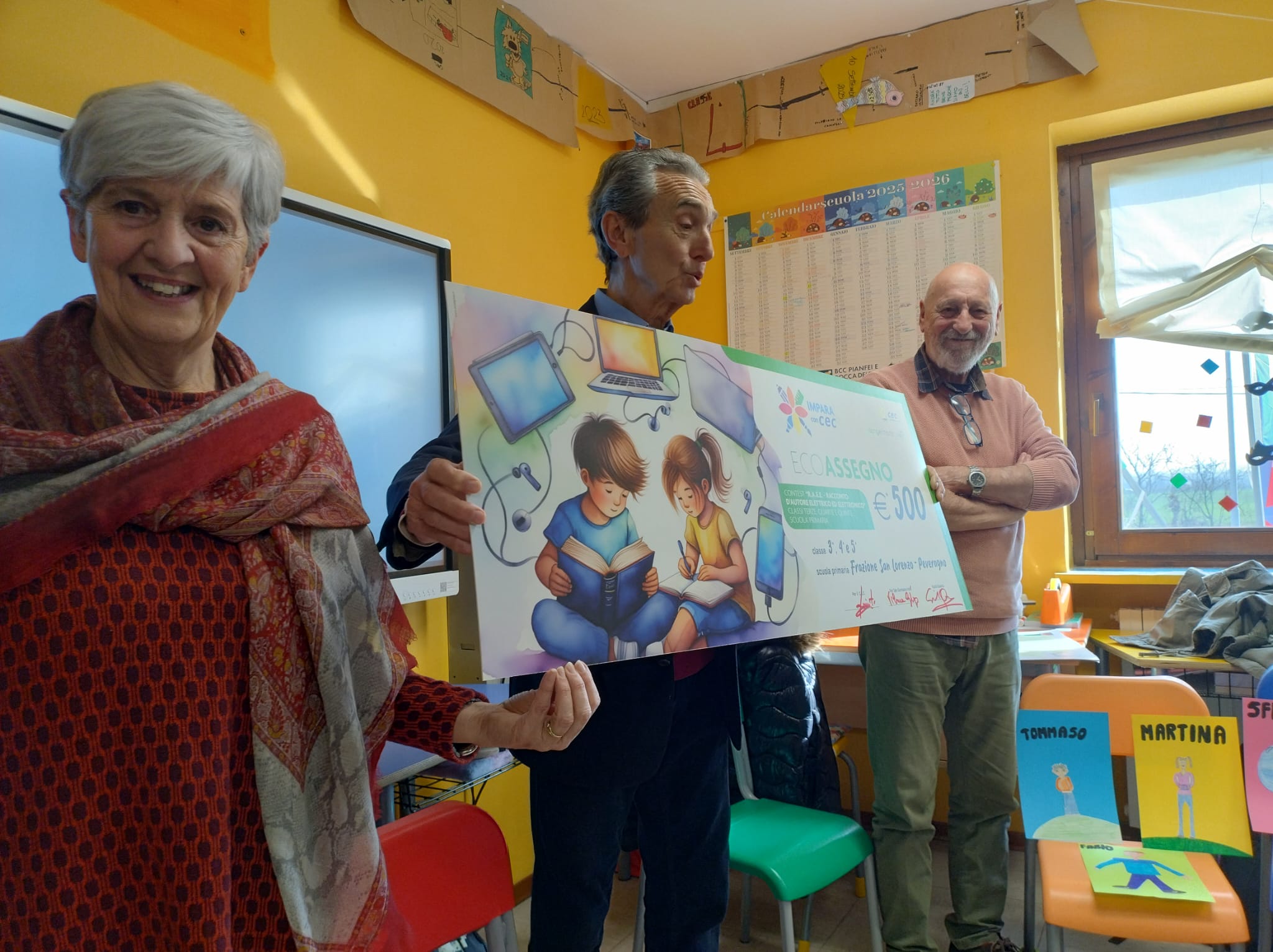 - Disegna un Futuro Elettrico ed Elettronico sostenibile: Scuola Primaria Revelli (Villar San Costanzo) Le classi 1ª e 2ª di Villar San Costanzo, guidate dalla maestra Bonelli, hanno vinto realizzando il miglior disegno sul tema del futuro sostenibile. Il loro elaborato, intitolato “I robot dei Ciciu”, ha saputo unire l’ecologia alle risorse e tradizioni del proprio comune. Hanno ricevuto il premio dal Sindaco Gianfranco Ellena e dal Presidente Quiriti.
